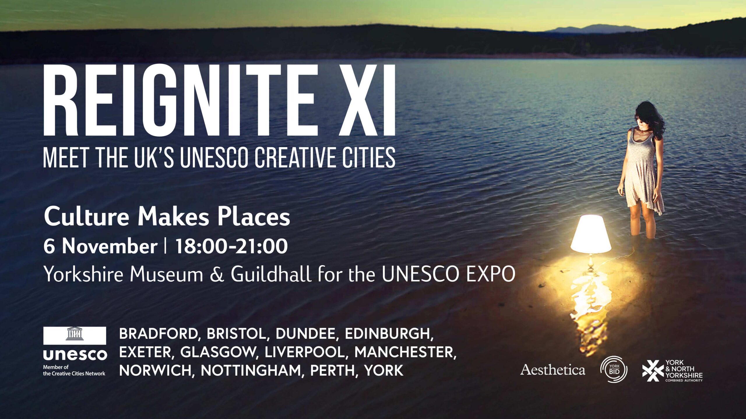 We’ve partnered with Aesthetica to bring you Reignite XI: Culture Makes Places, bringing together all of the UK’s UNESCO Creative Cities for an inspiring evening of presentations, discussion, and collaboration. Guests are invited to explore York’s UNESCO City of Media Arts EXPO afterwards, where 40 brilliant local businesses will be exhibiting.