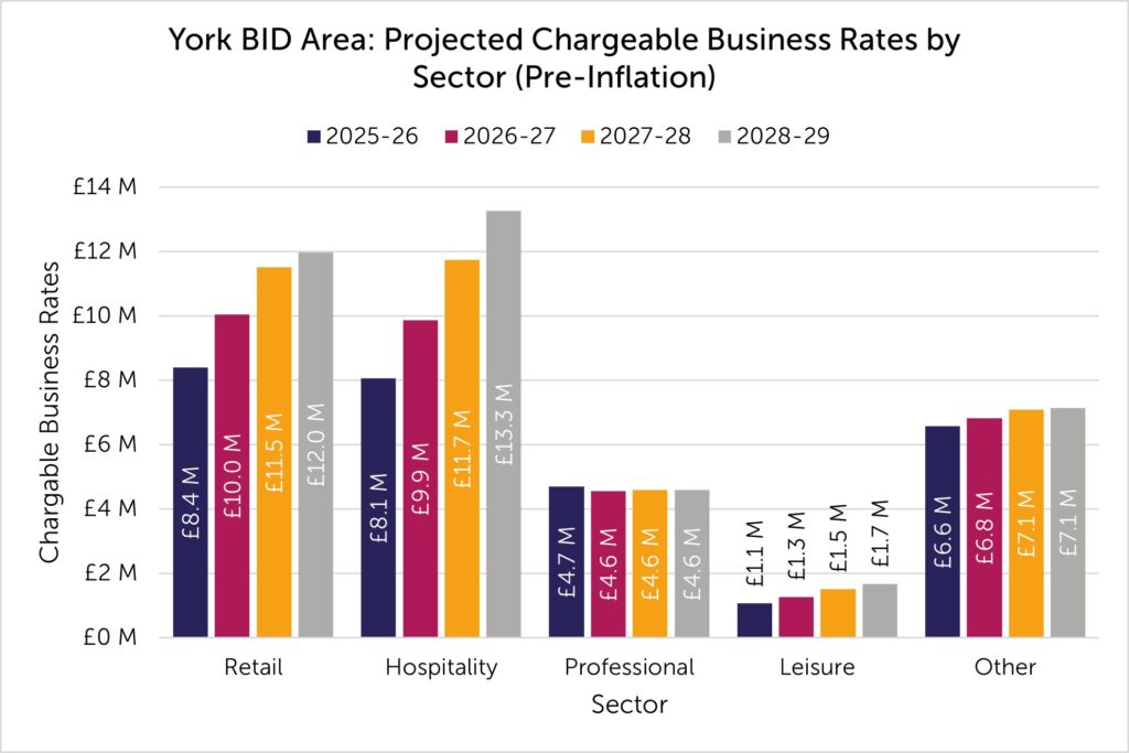Despite commitments in the Labour Party’s manifesto to reform business rates and level the playing field between the high street and online giants, York BID’s analysis suggests hospitality businesses risk bearing a disproportionate burden. The sector faces an estimated £1.8 million increase in business rates liabilities next year alone – a 23% rise on the current financial year (2025/26) – with further £3.4 million of increases expected in subsequent years (pre-inflation).